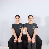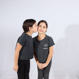 בסט השלישי חיפשתי המון עוד זוג תאומות זהות (שזו משימה מאוד לא קלה) ולבסוף מצאתי זוג תאומות מהממות בכיתה ג, גם מהן ביקשתי לבוא בלבוש תואם, שצ ילמתי אותן רציתי לצלם גם את הרגליים שלהן ולכן השתמשתי בבד לבן על הרצפה שיראה יותר ״נקי״ מבחינה צילומית בתמונה.